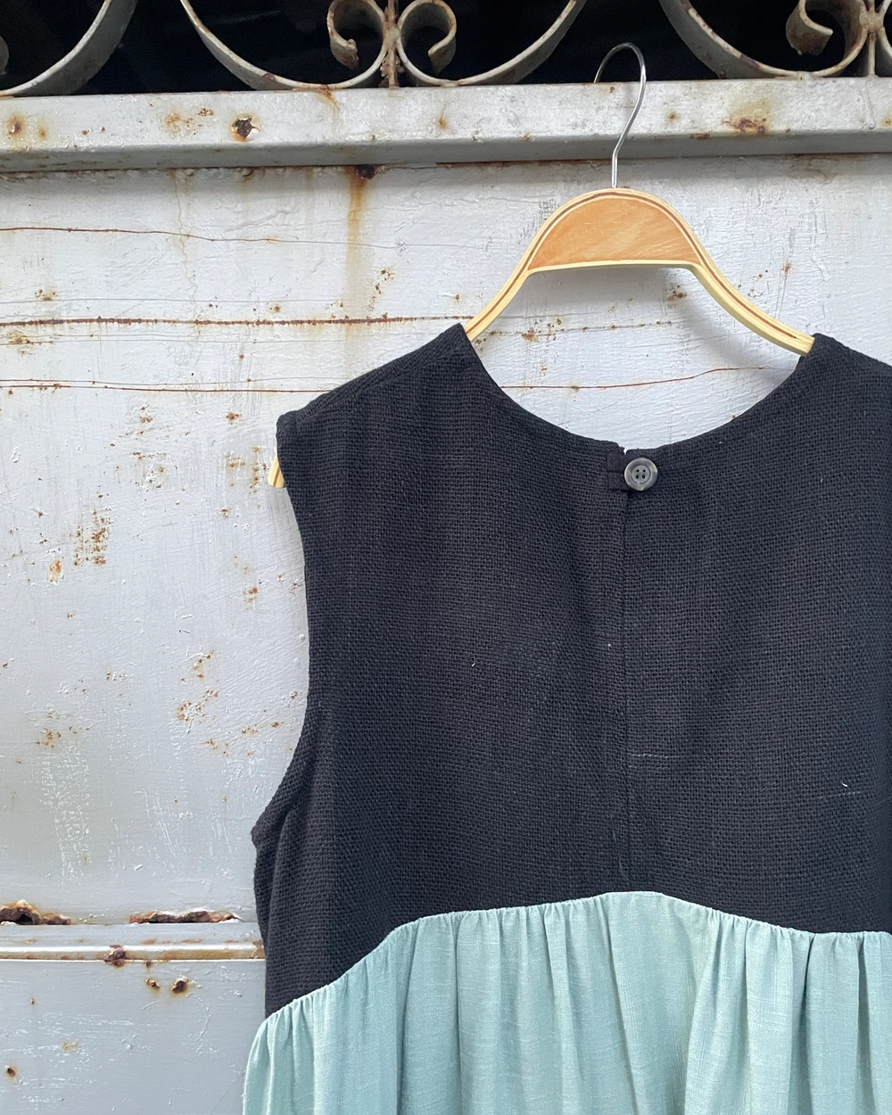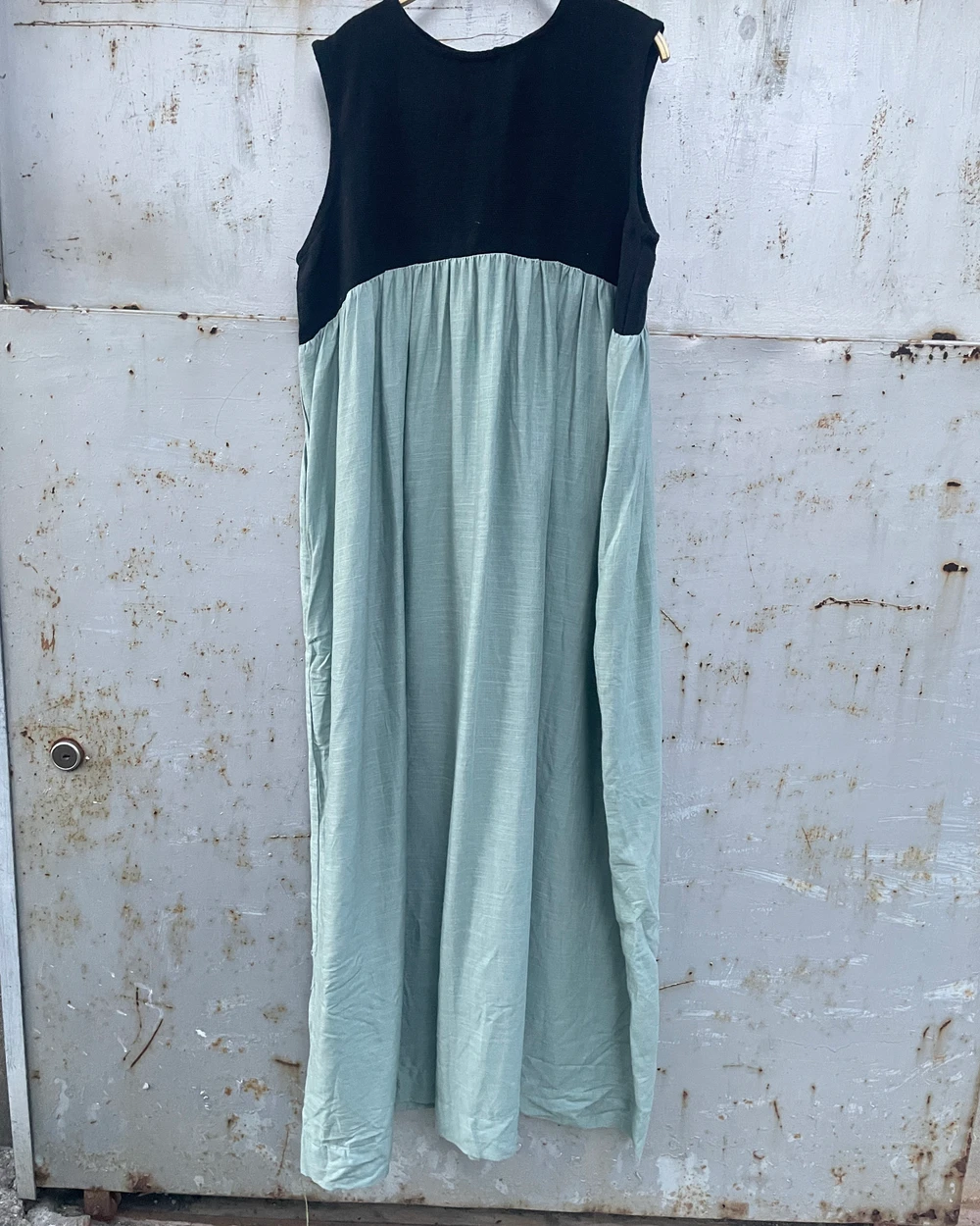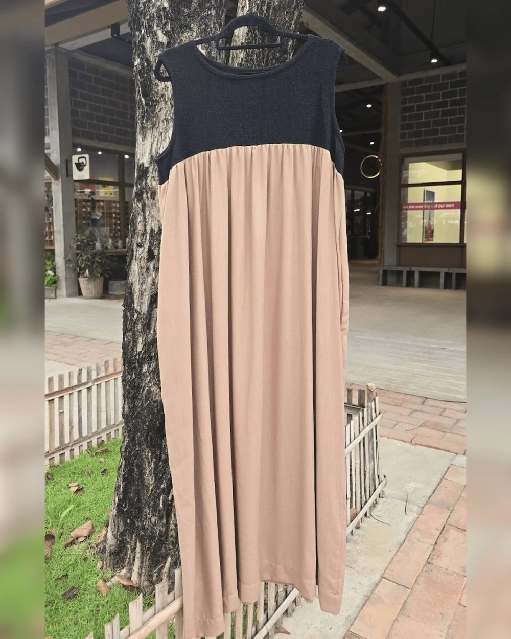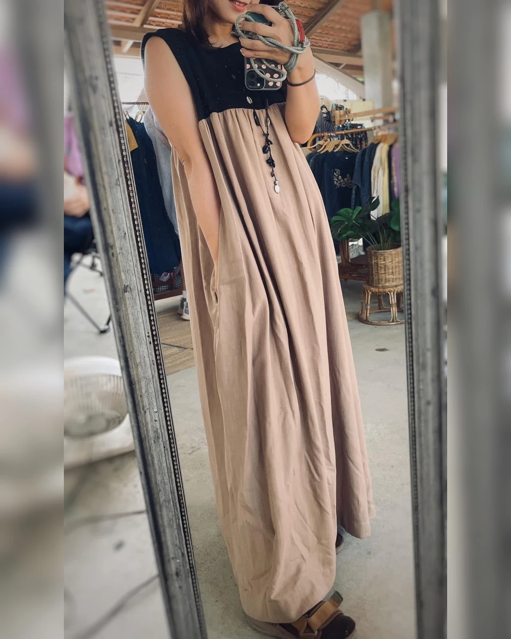 《預購》Hnadmade亞麻混棉拼接長洋裝