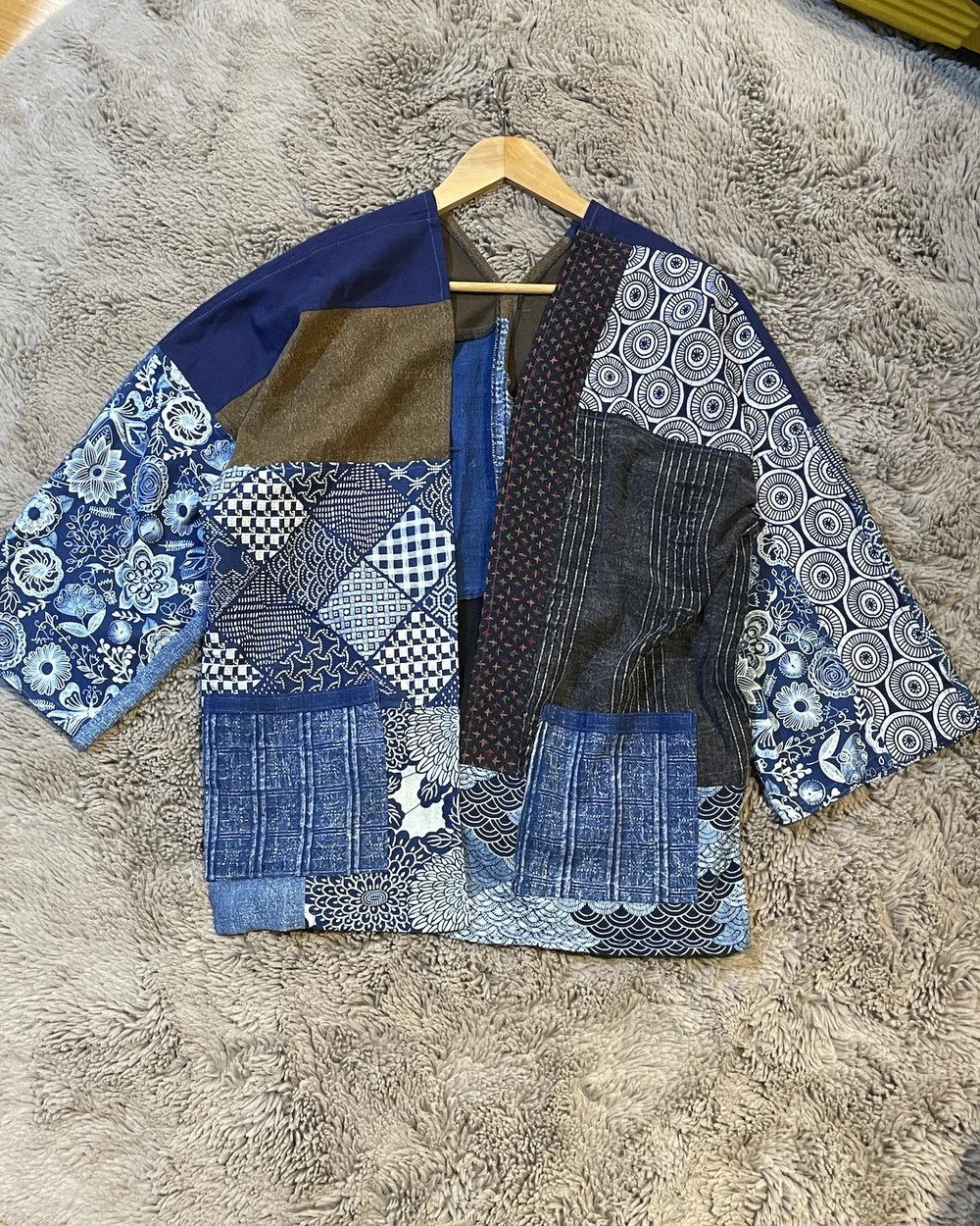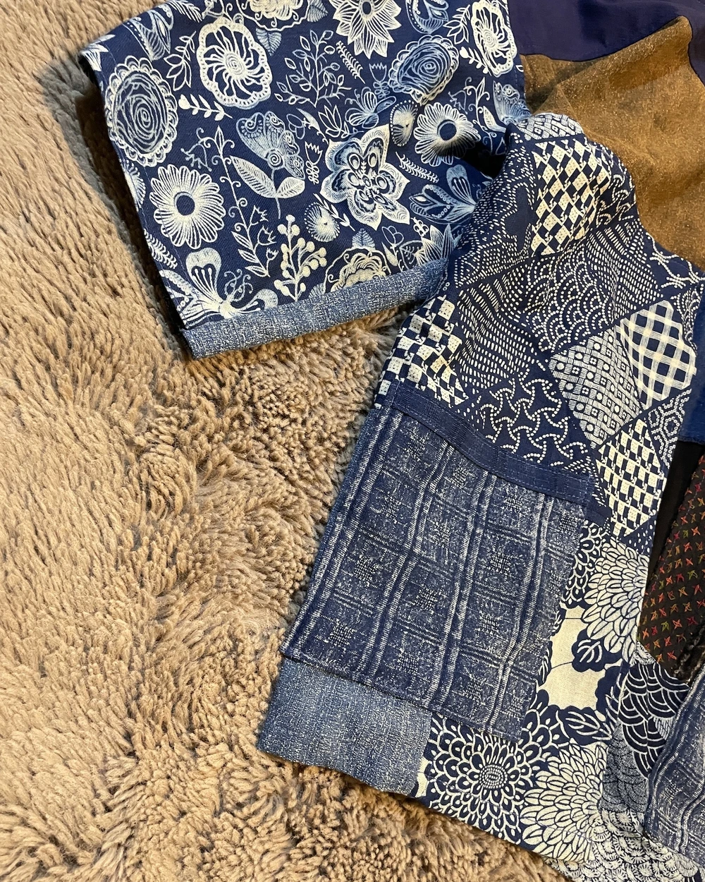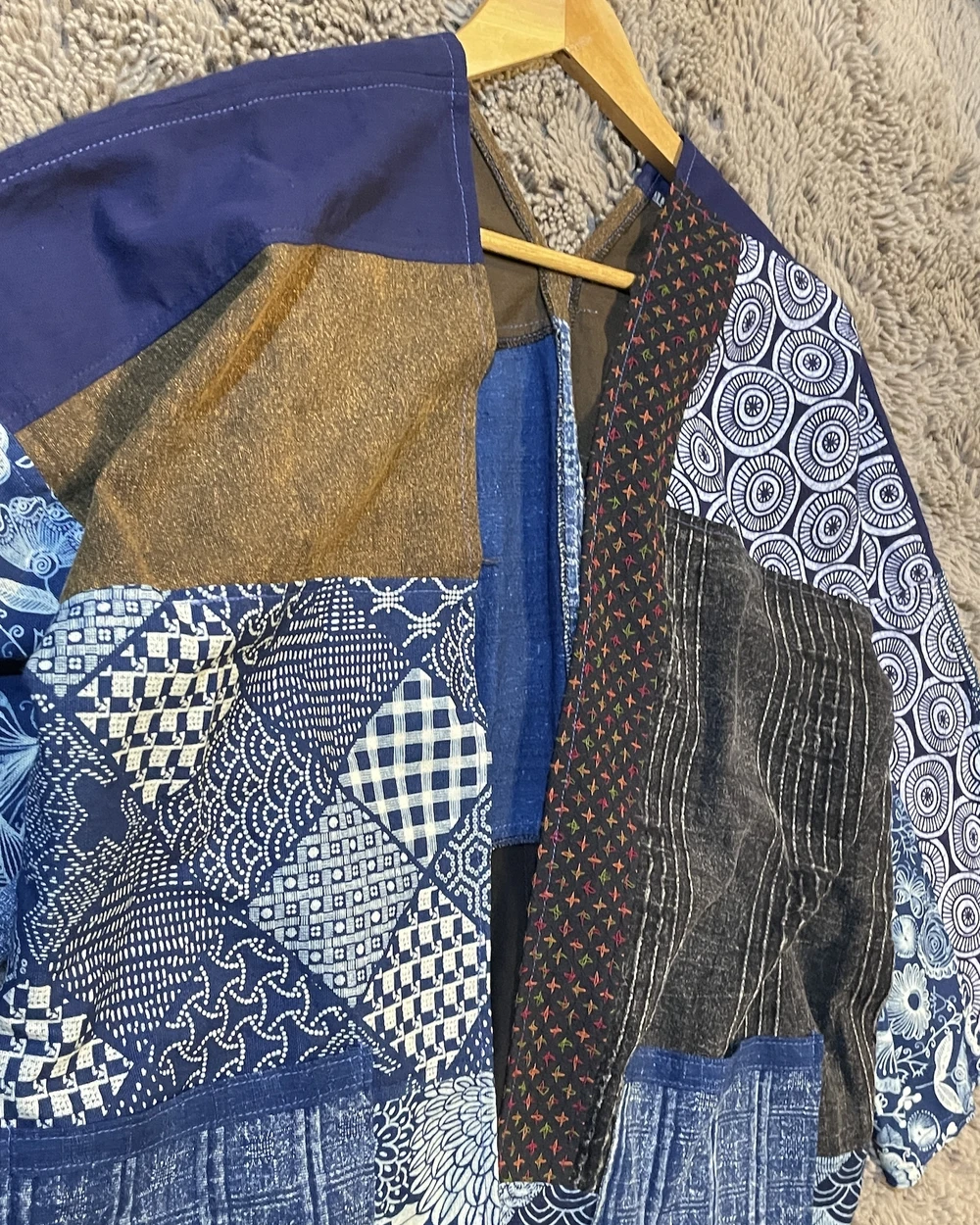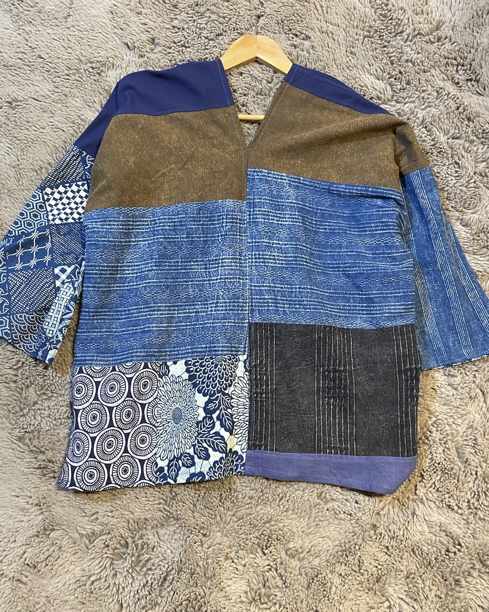 Indigo cotton藍染拼接罩衫
