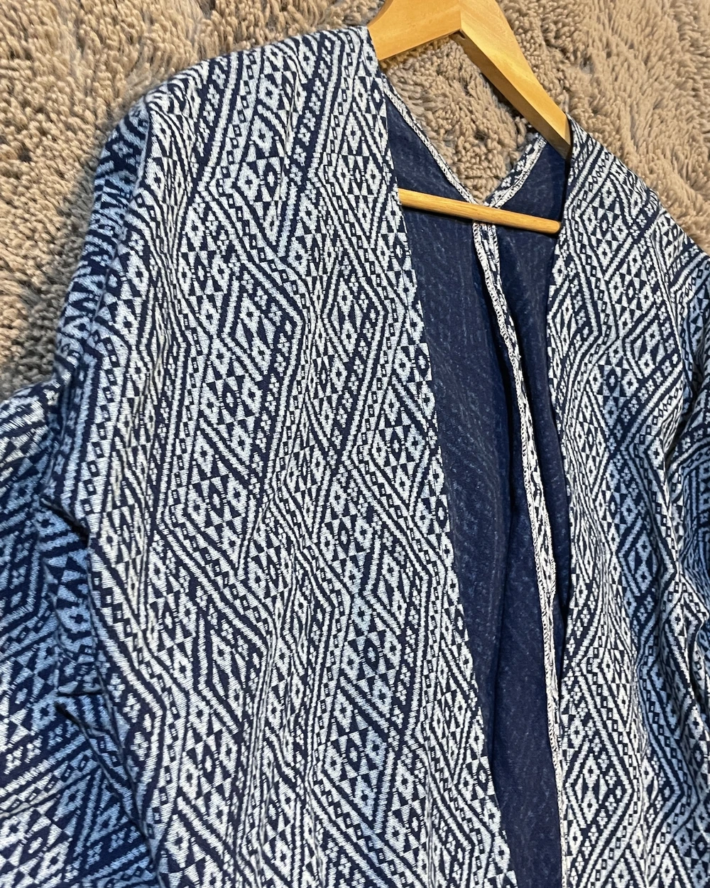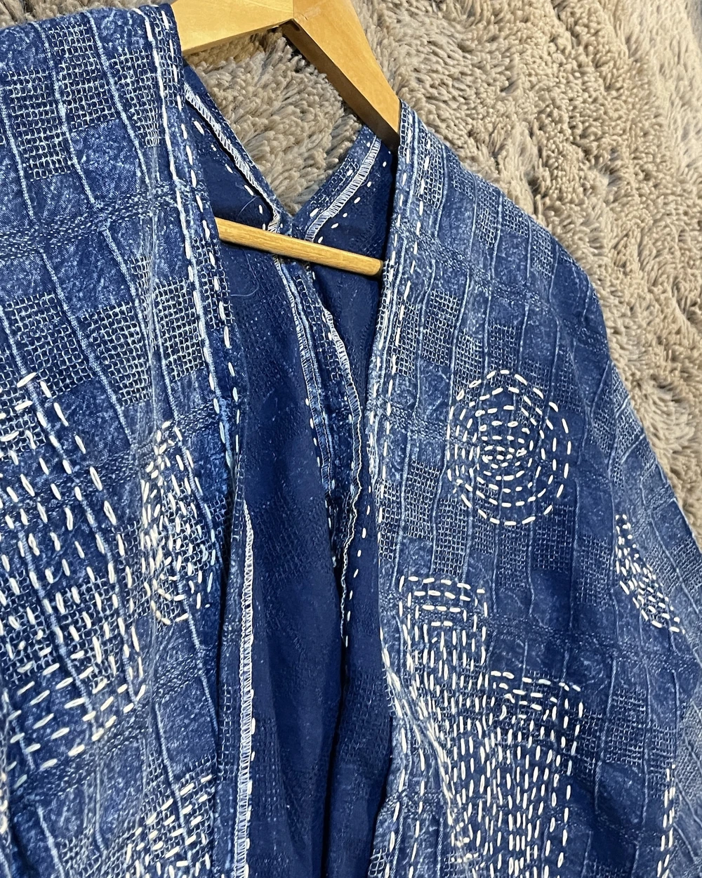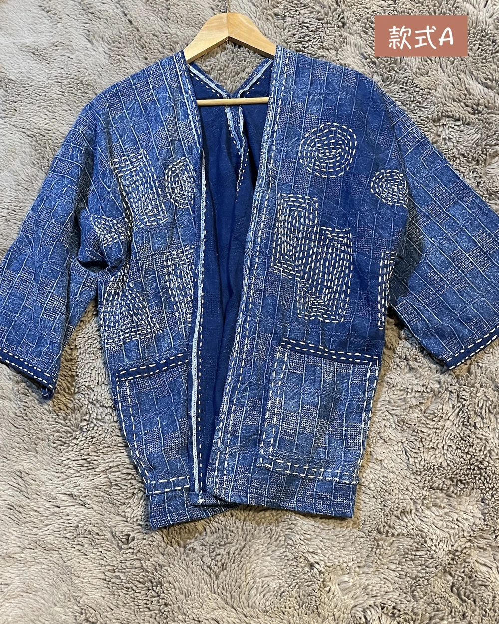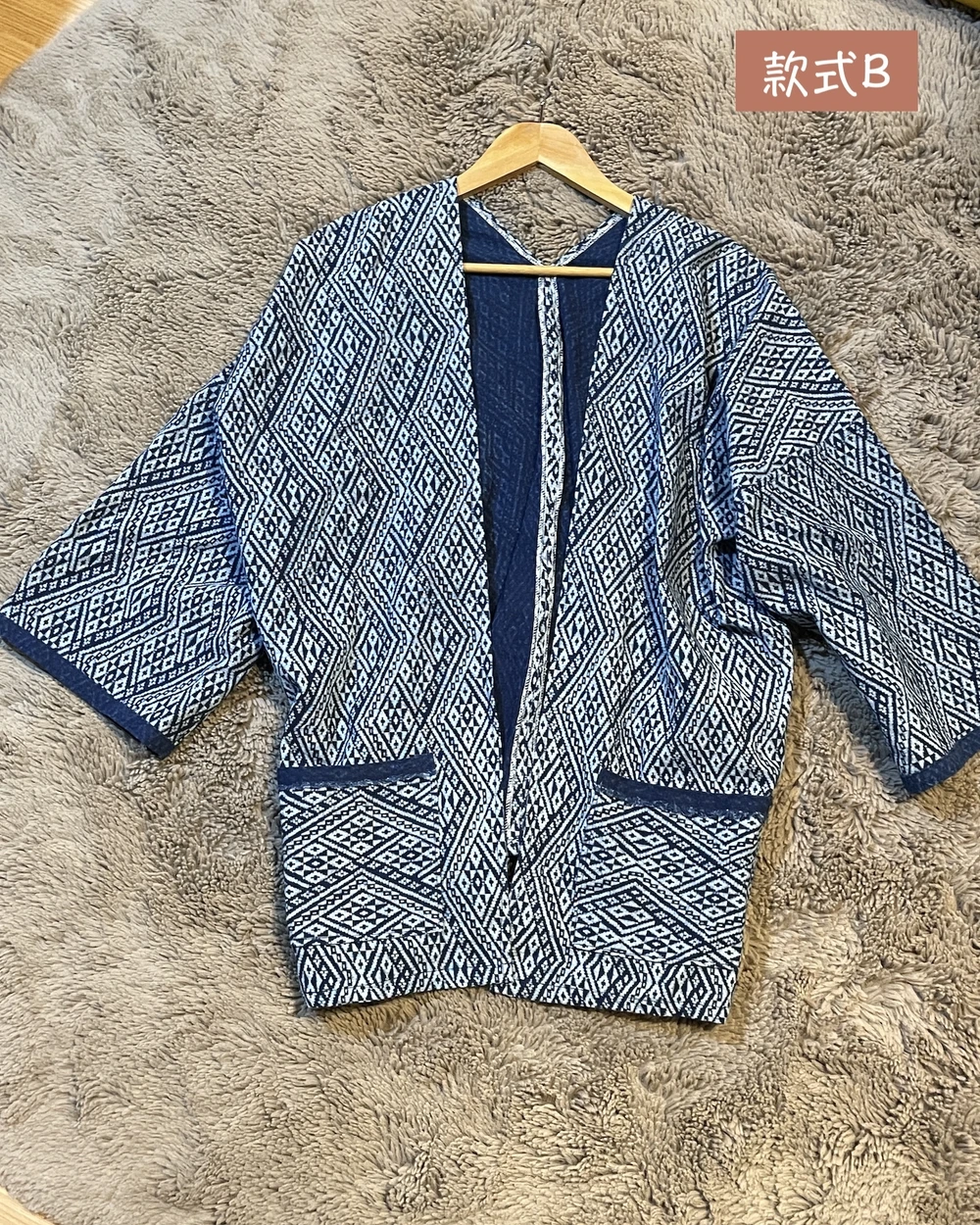 Indigo cotton藍染手縫/圖騰罩衫