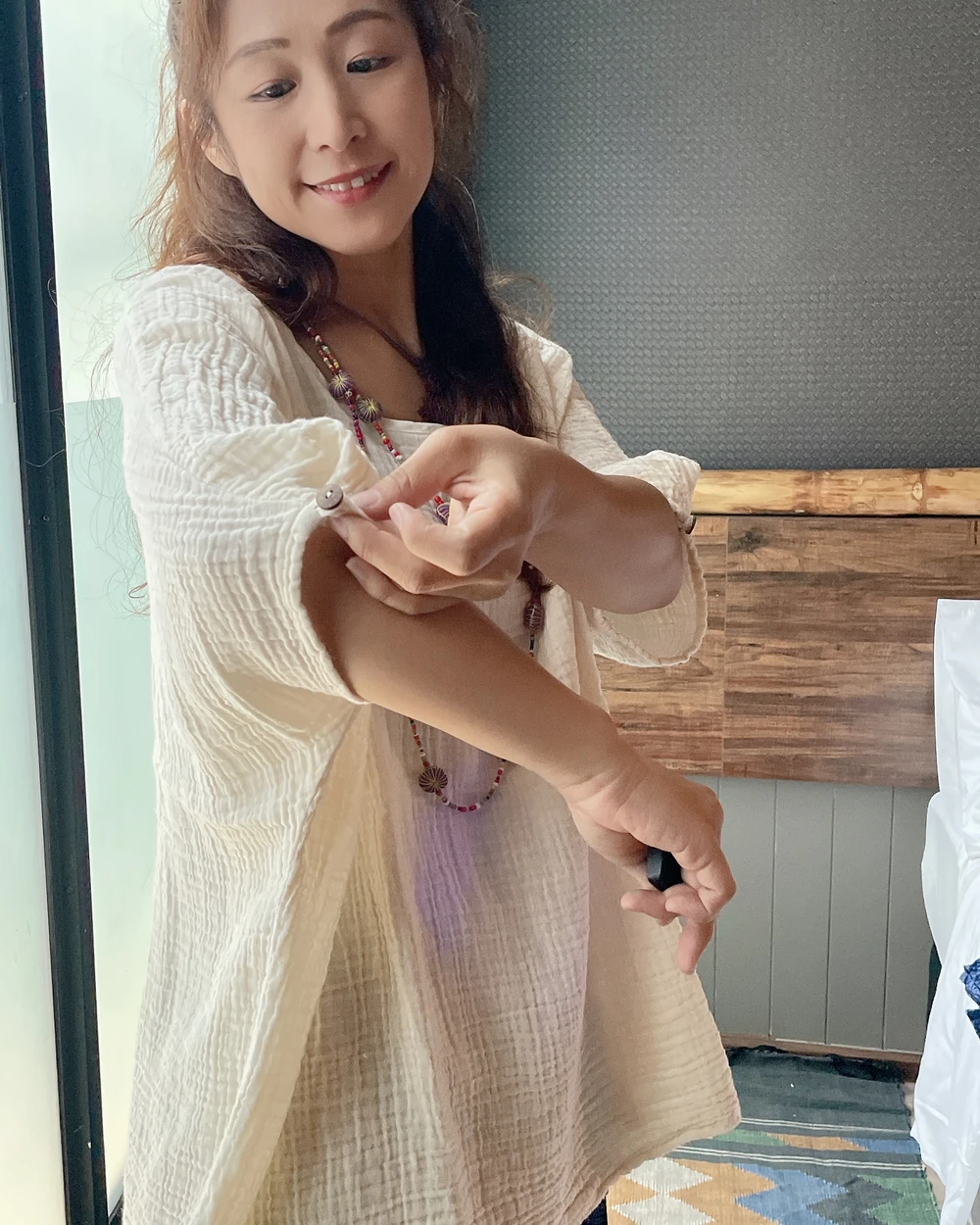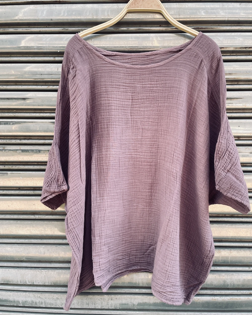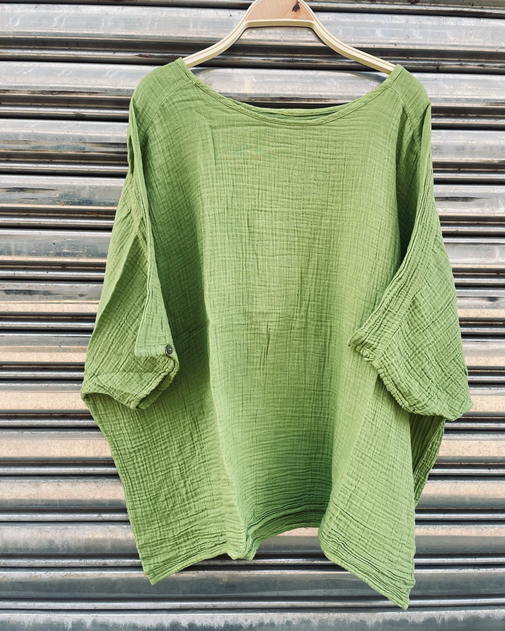 M919雙層棉紗七分袖木釦上衣