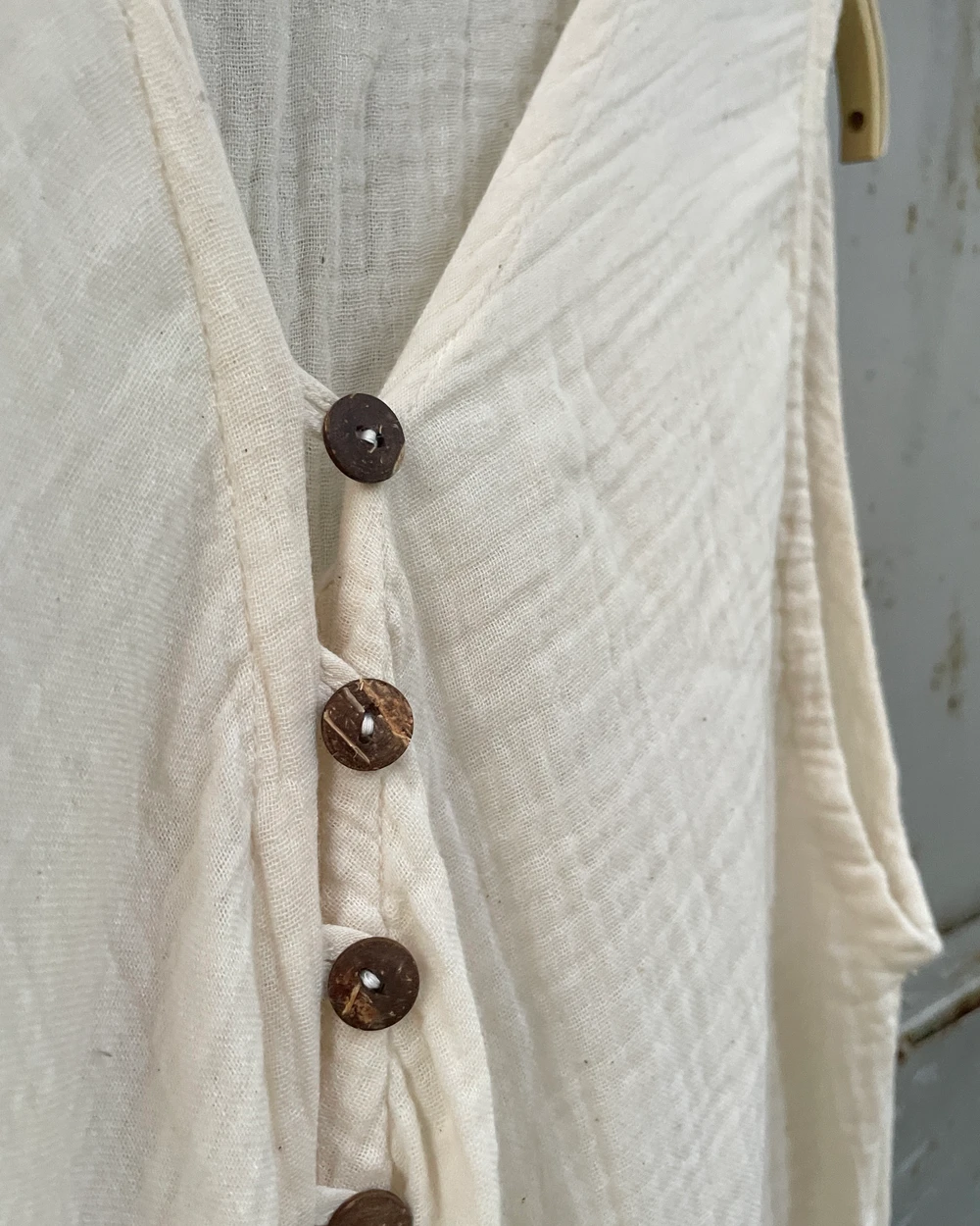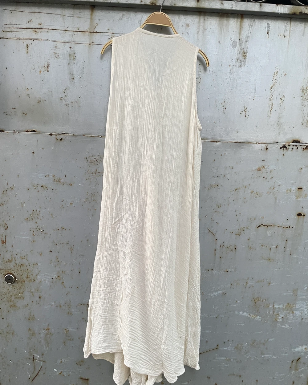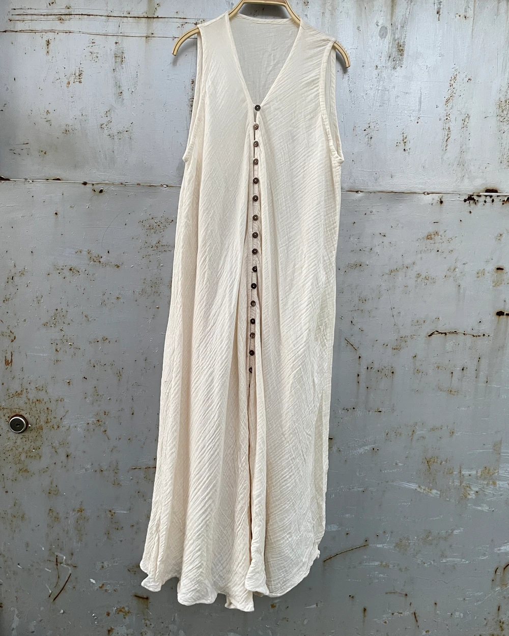 雙層棉紗排釦無袖長洋裝
