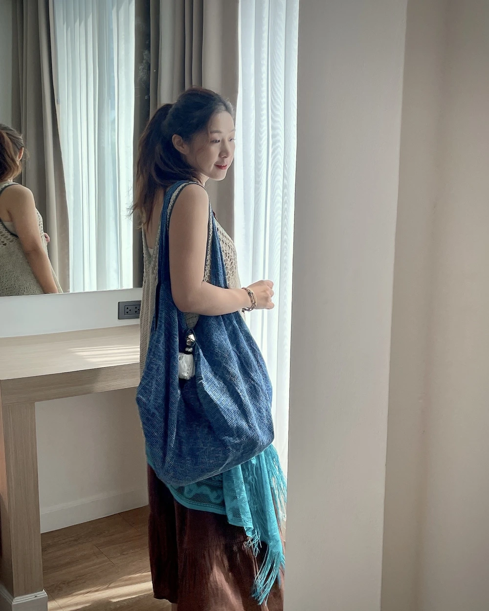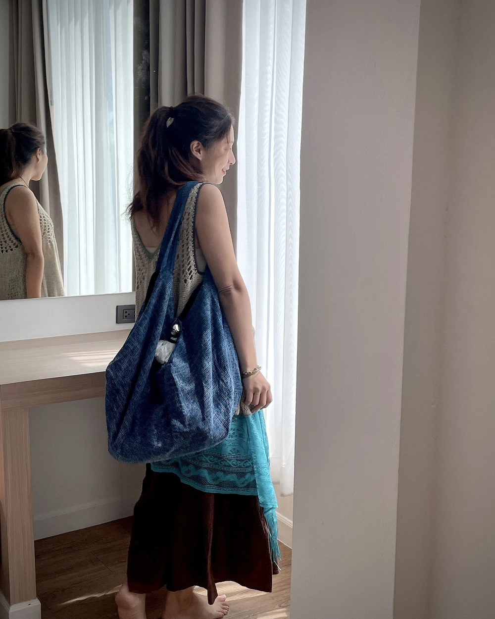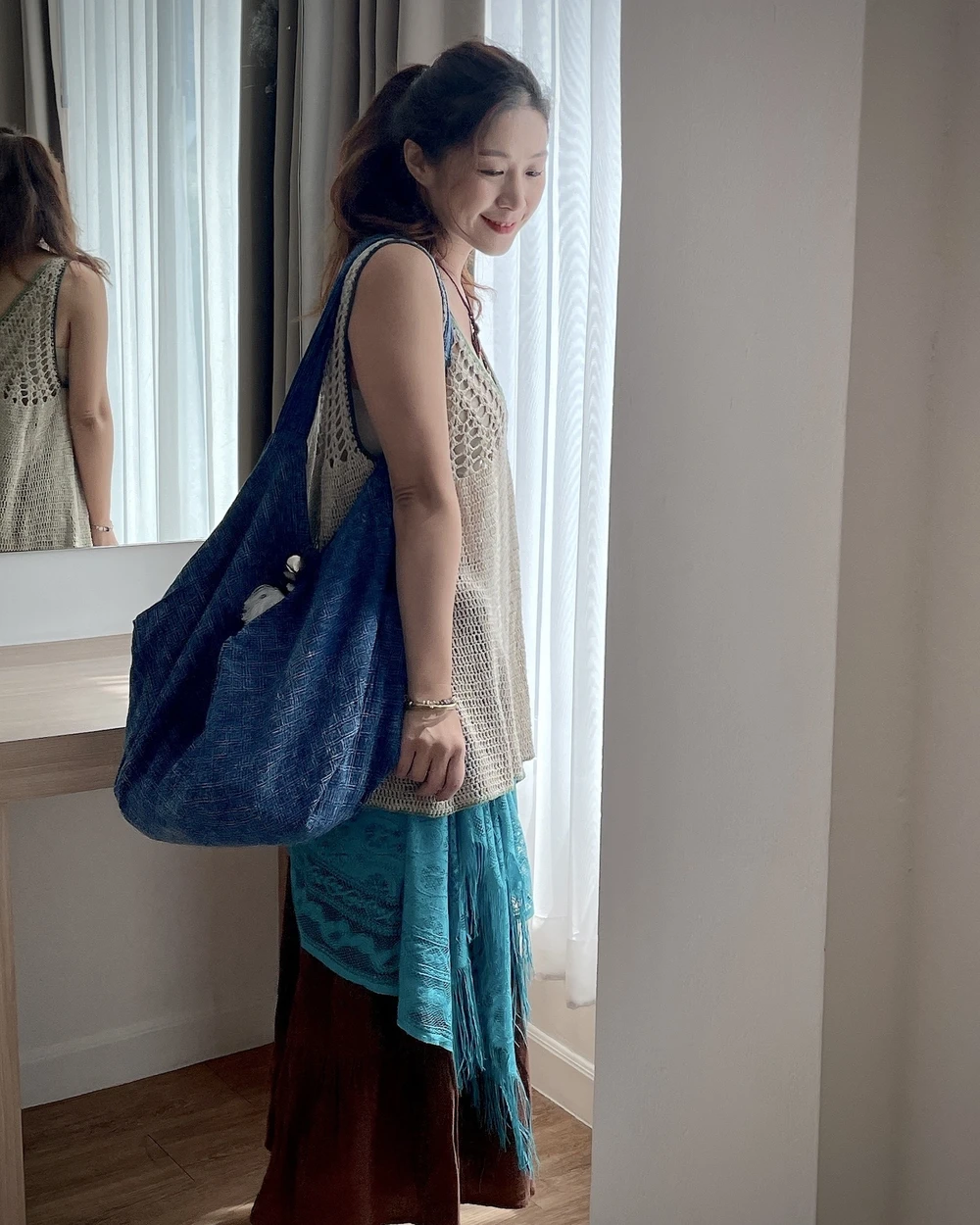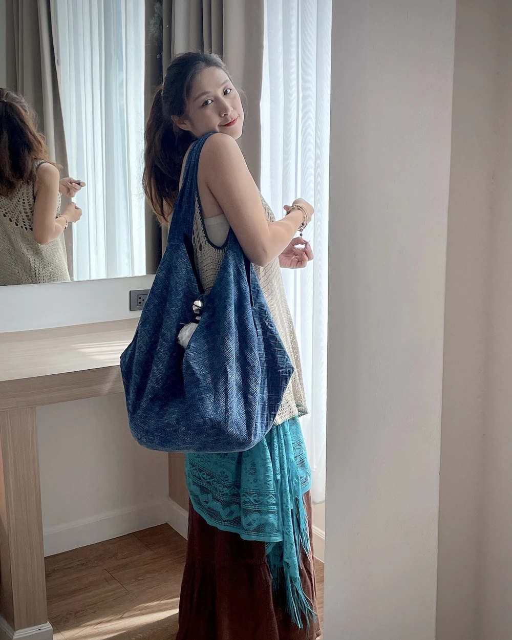 Thai Style石洗藍染氣球側背包