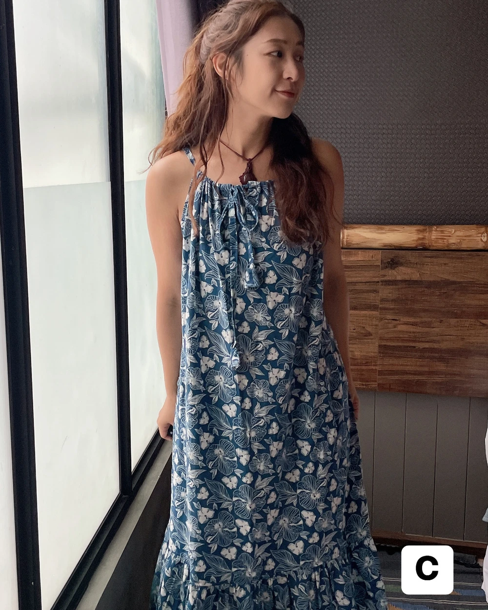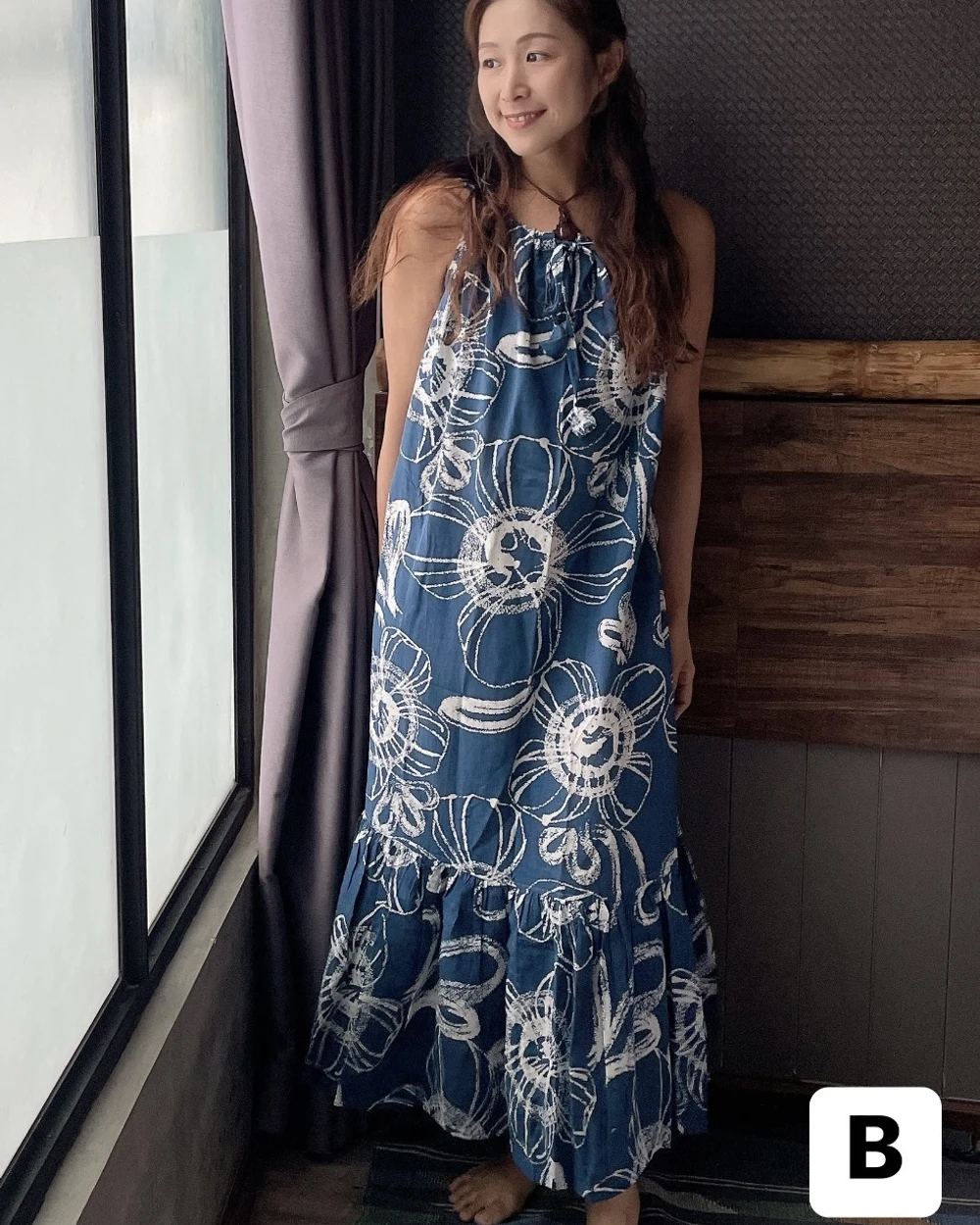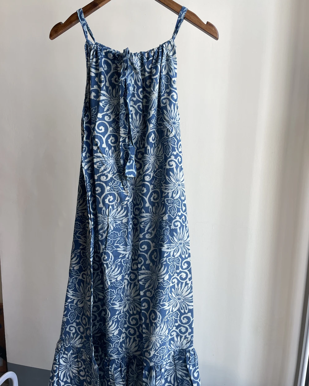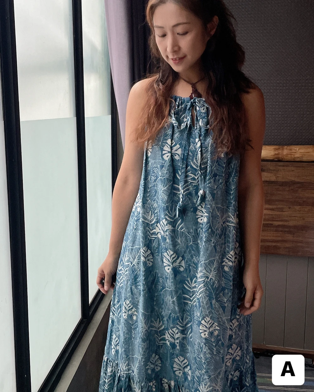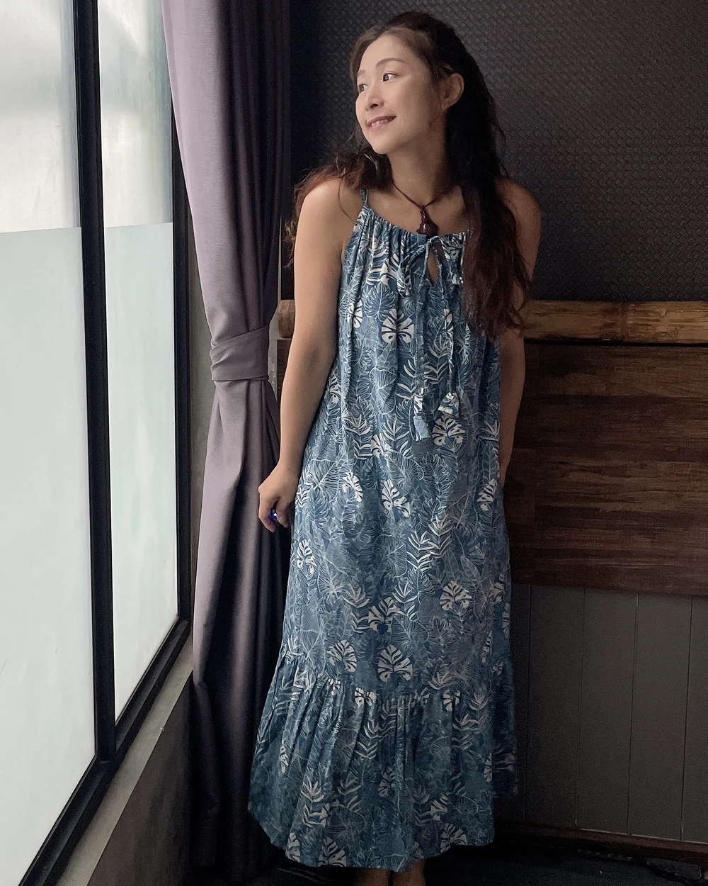 M202 Thai Cotton藍染圖騰綁帶細肩洋裝
