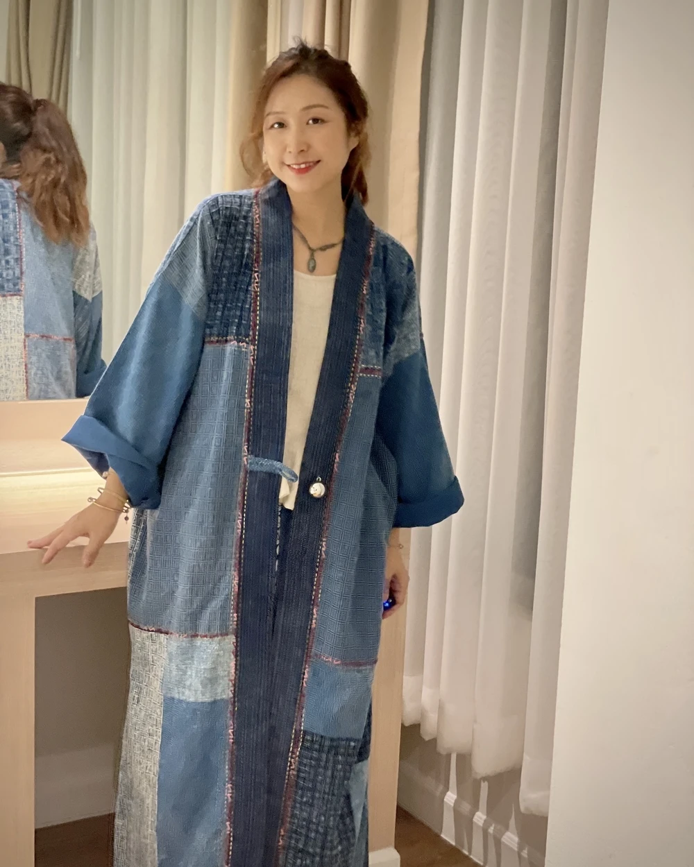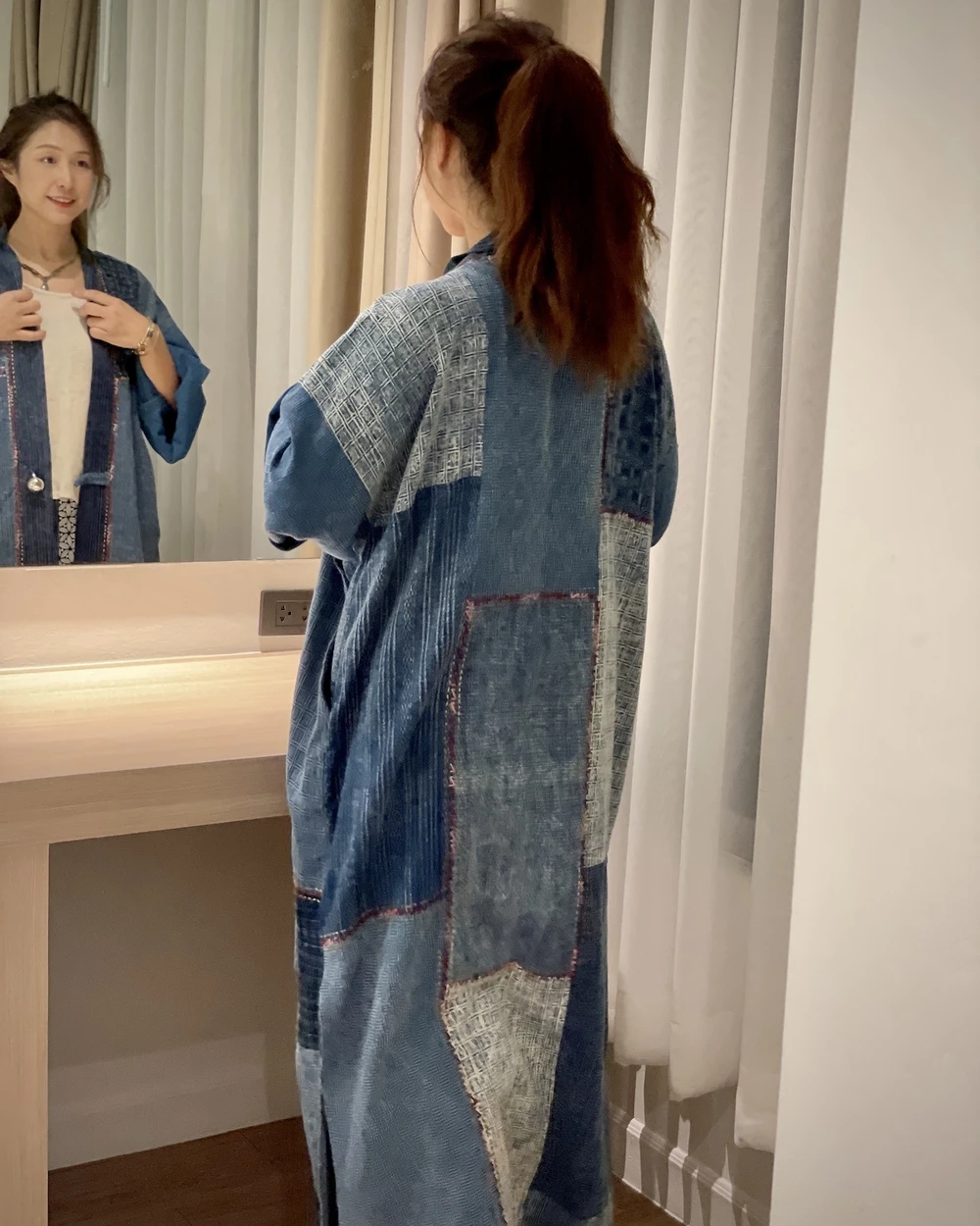 Thai Cotton藍染水洗棉手繡長版罩衫